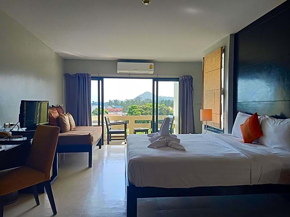 Room features a private balcony.